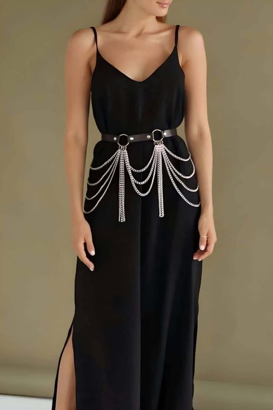 Adjustable Stylish Leather Belt Harness with Chain