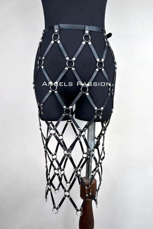 Harness Skirt, Leather Knit Harness Skirt, Stylish Leggings Over Skirt